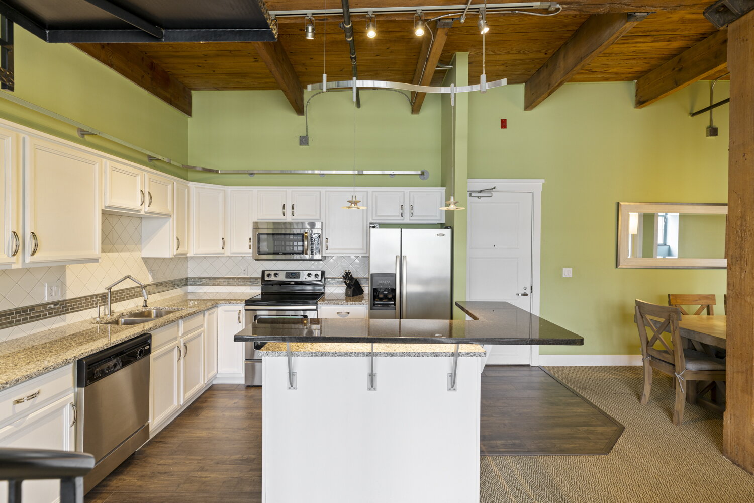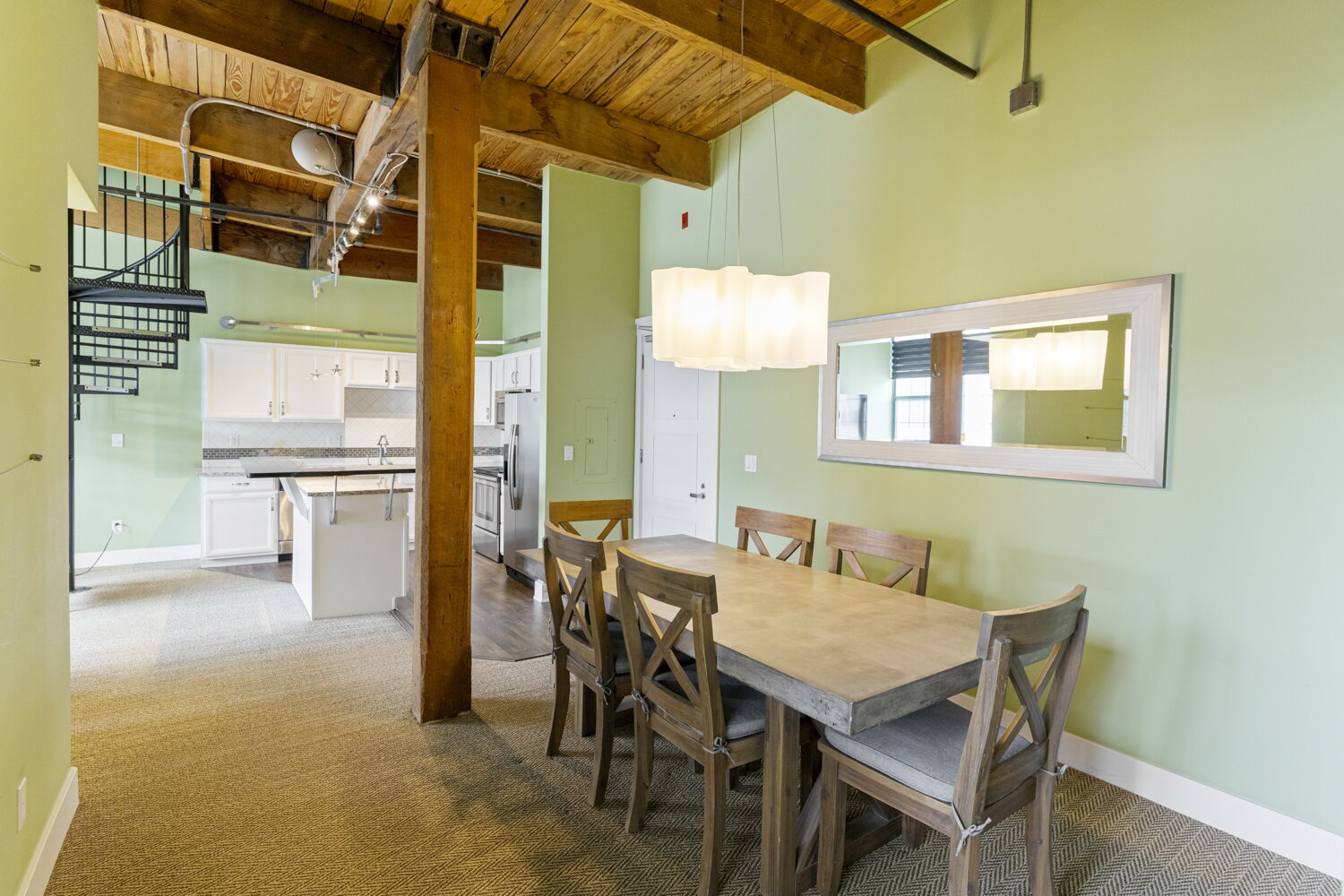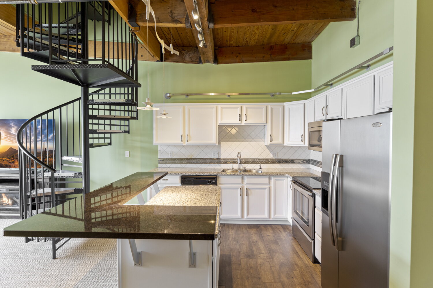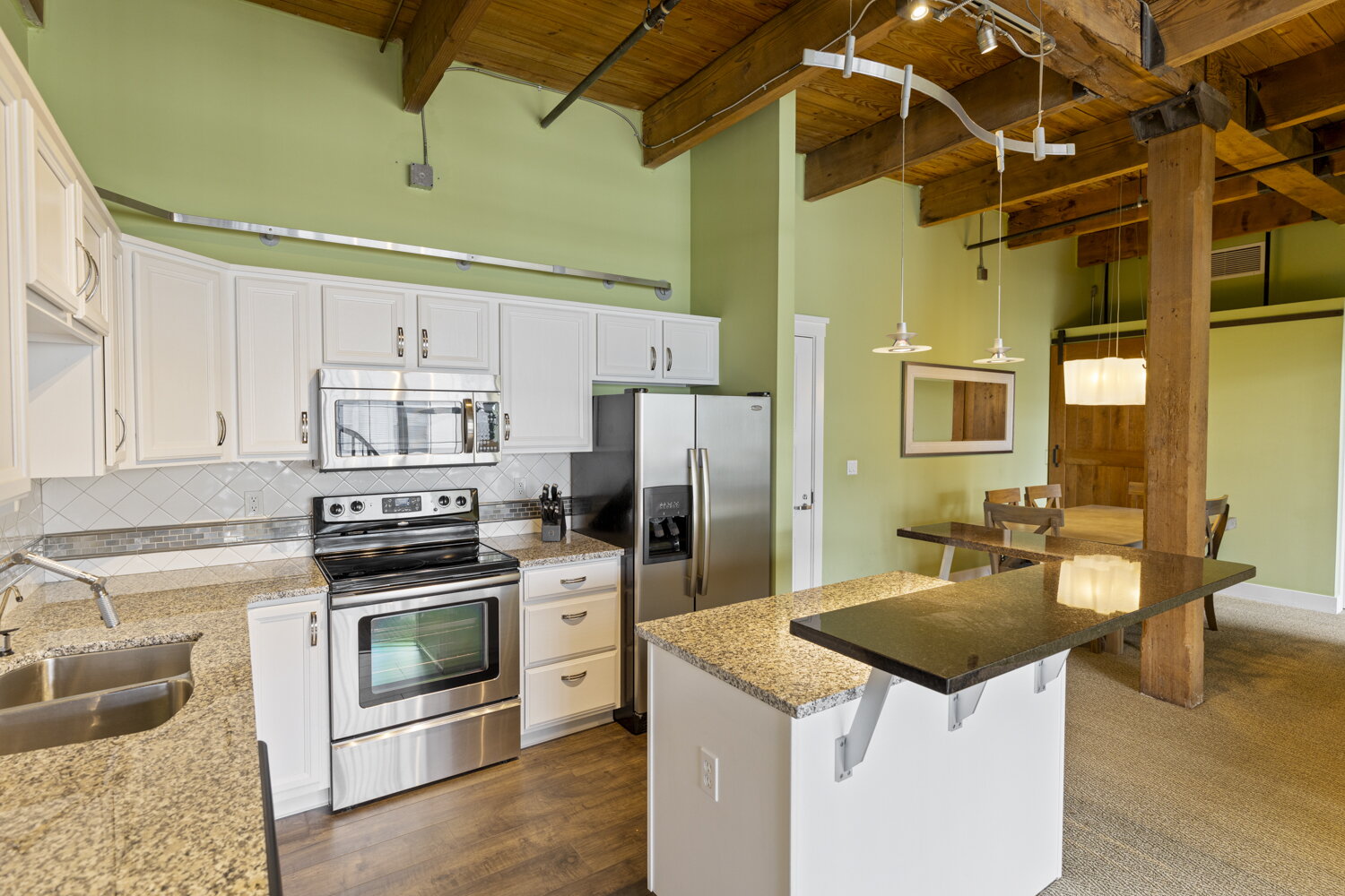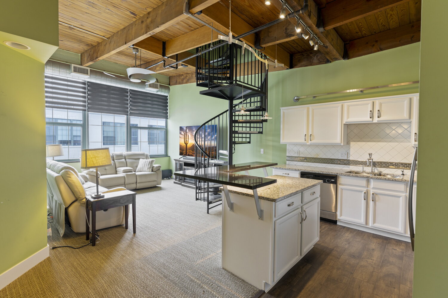 Step into a piece of Grand Rapids history with this stunning 5th-floor condo at 940 Monroe Avenue NW. Located in a beautifully restored 1892 furniture factory, Unit 536 blends raw industrial character with contemporary comfort. You’ll find soaring 12-foot timber ceilings, authentic exposed brick, and massive windows that bathe the open-concept layout in natural light.